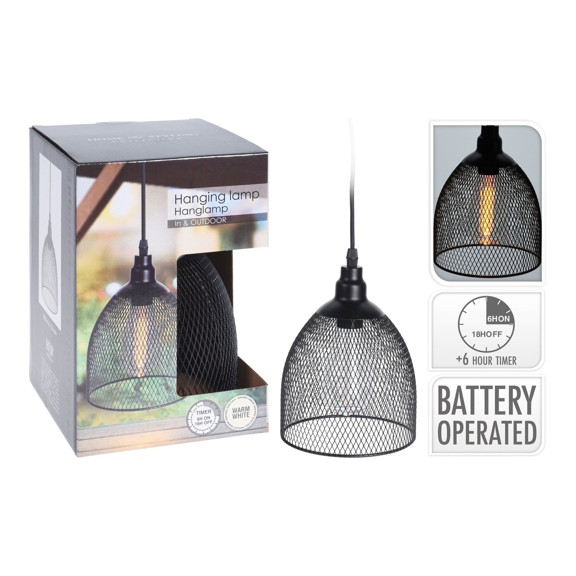 50% Off, Af5100800 Hanging Lamp Wire Black, Metal W/ Edison Bulb And Timer, 4X Aa Batteries Not In, Last Chance