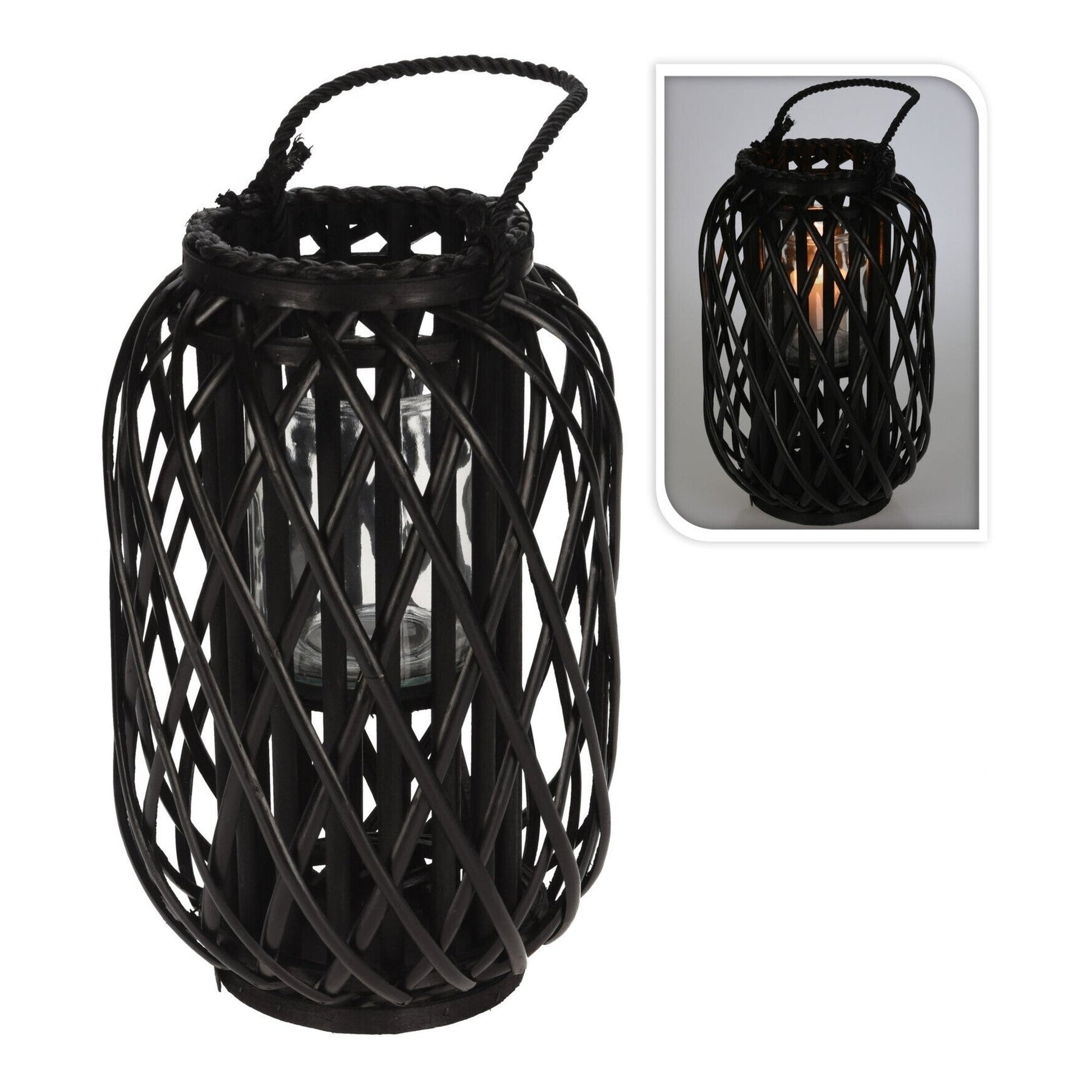 50% Off, 438002020, Lantern Split Willow, Black With Rope On Top Each. With Glass Cylinder 5x6 in