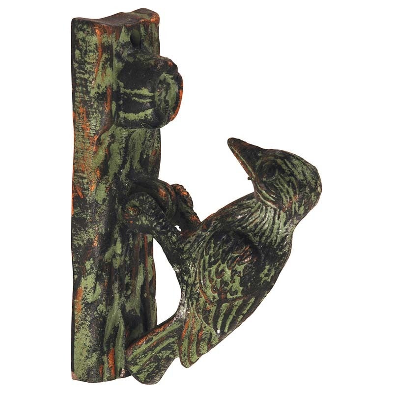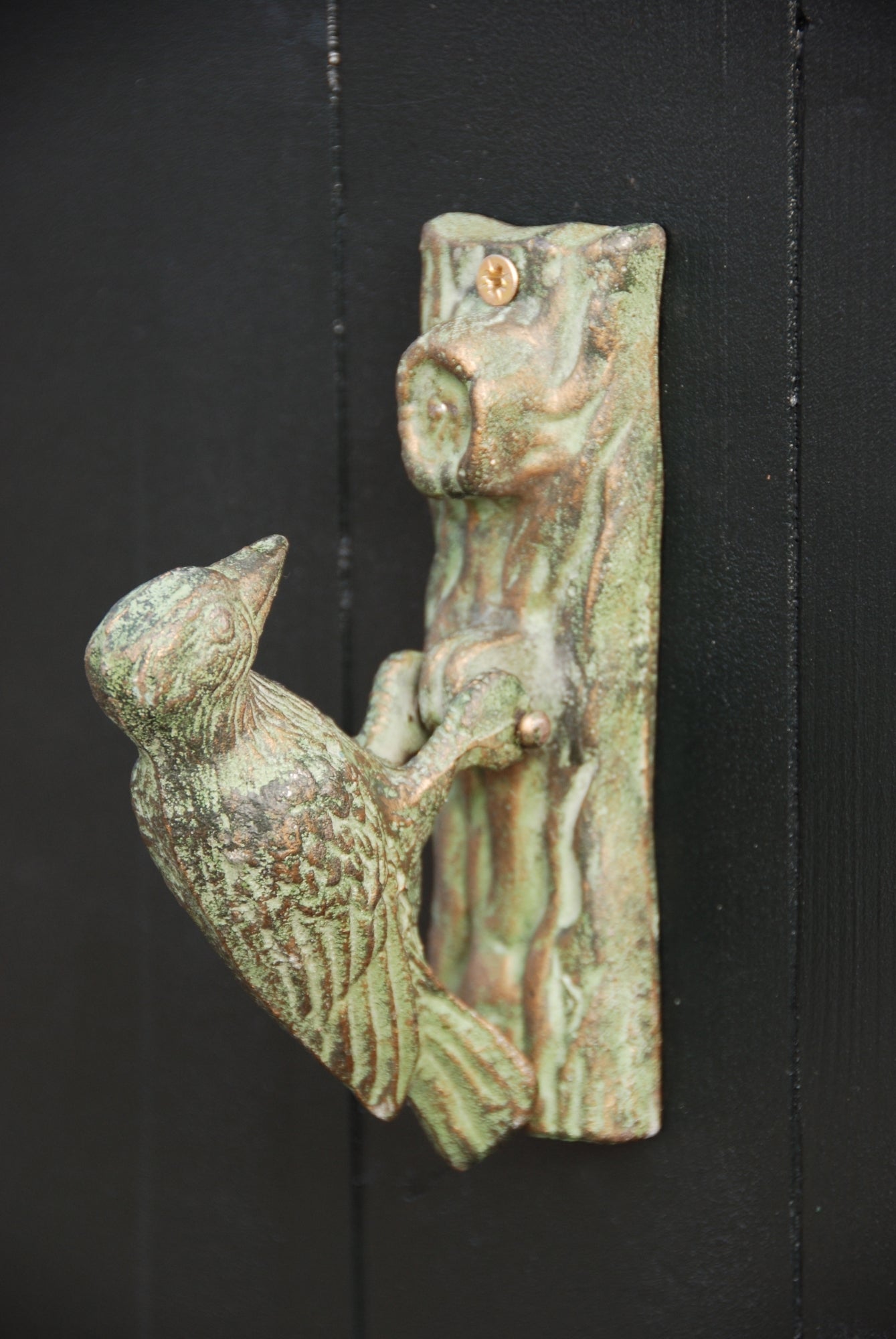 Before the doorbell made its entrance people had a doorknocker for guests to announce their presence. This traditional cast iron doorknocker has a woodpecker that hammers a log for the clapper, and has been hand cast according to age old tradition and craftsmanship. Fixings not included.