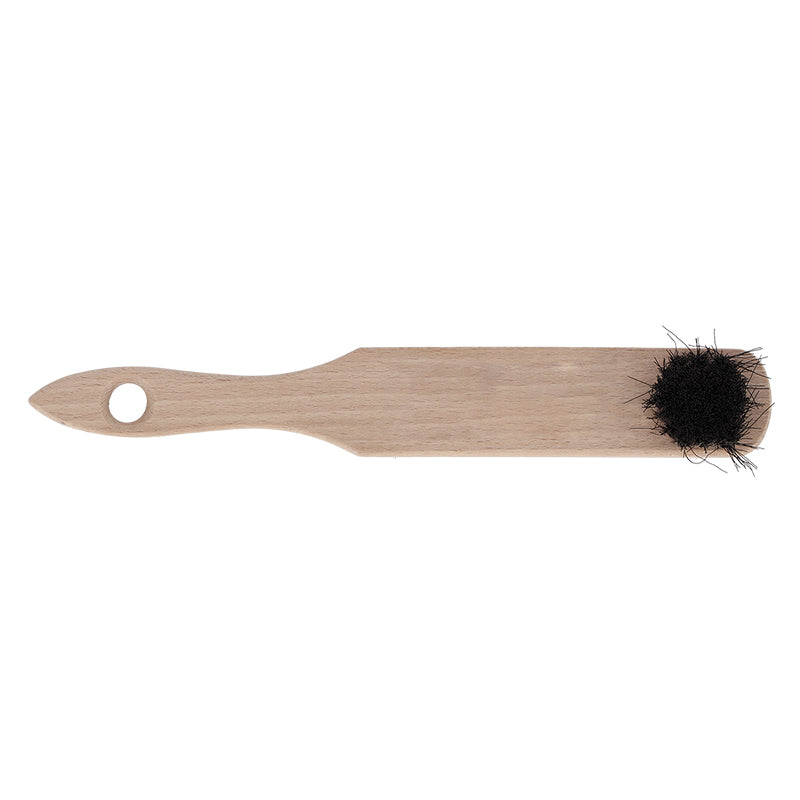 This handy boot brush has two brushes, a small applicator brush and a buffing brush. Made from wood with black bristles.- made from beech wood- 2 brushes- with handle