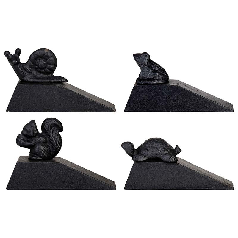 No more slamming doors, thanks to this cast iron wedge in classic design in animal shape, the wedge shaped design of this item will ensure a tight fit under any door. This decorative cast iron door stopper has been hand cast according to age-old tradition and craftsmanship. Assortment of four designs (squirrel, turtle, snail, frog).