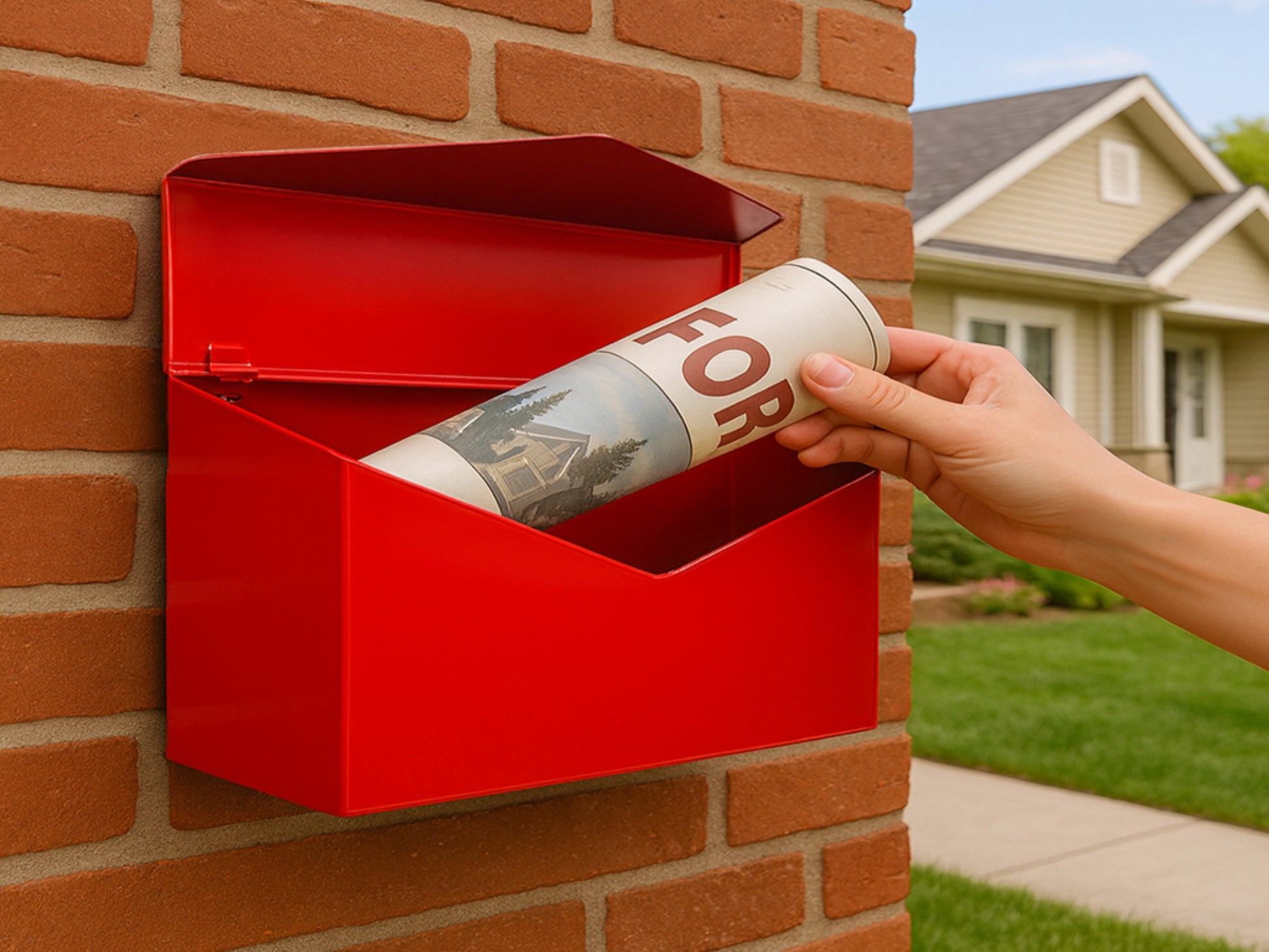 Long Envelope Mailbox Red, Steel, India, Last Chance