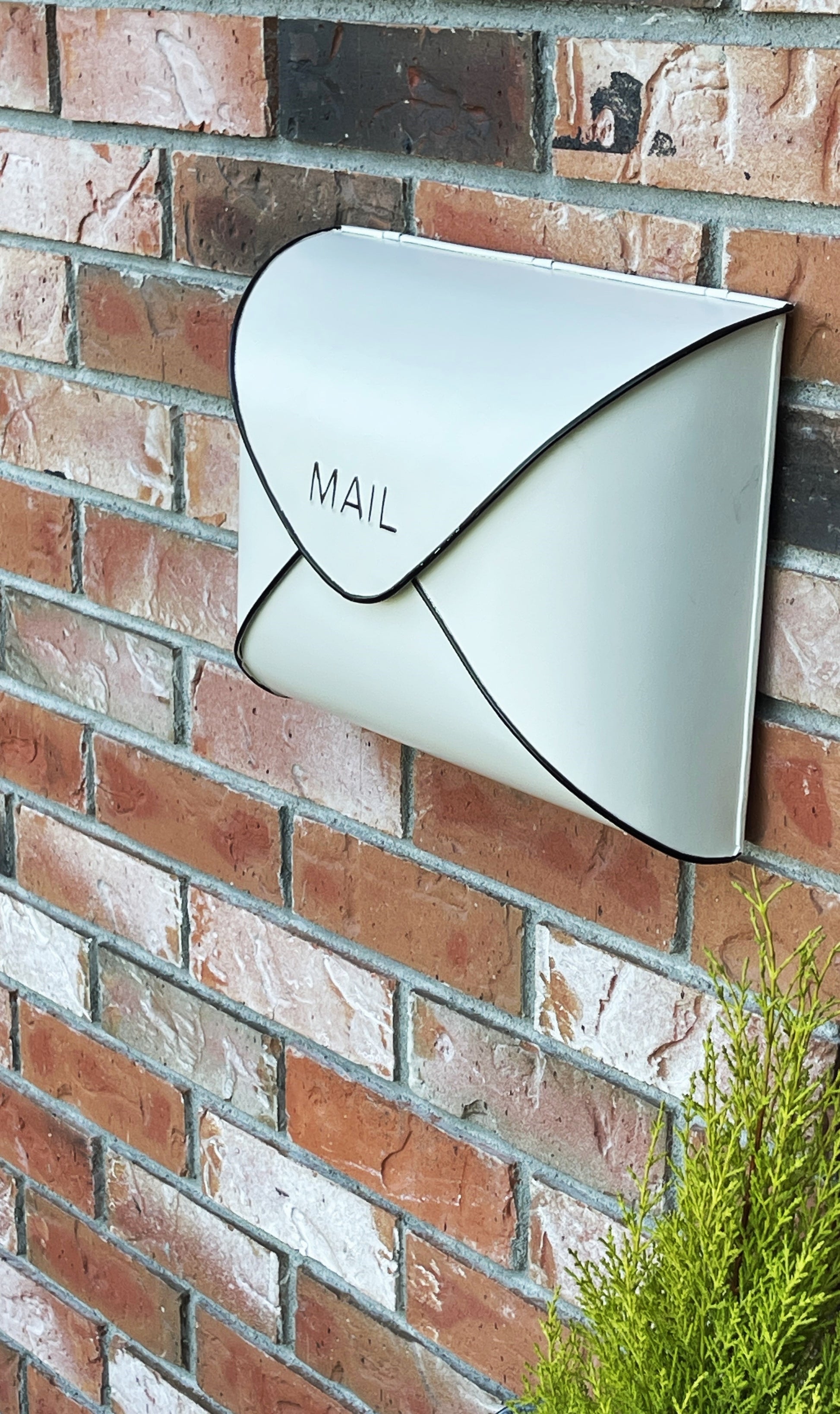 Envelope Mailbox, Off White With Black Tubing