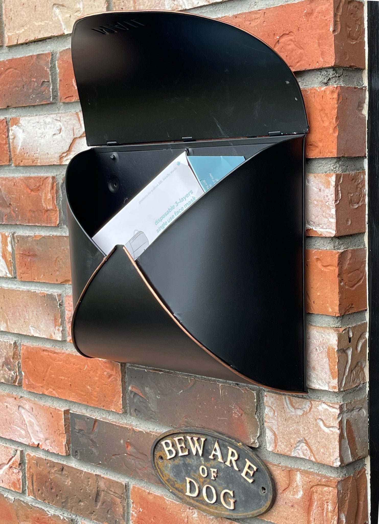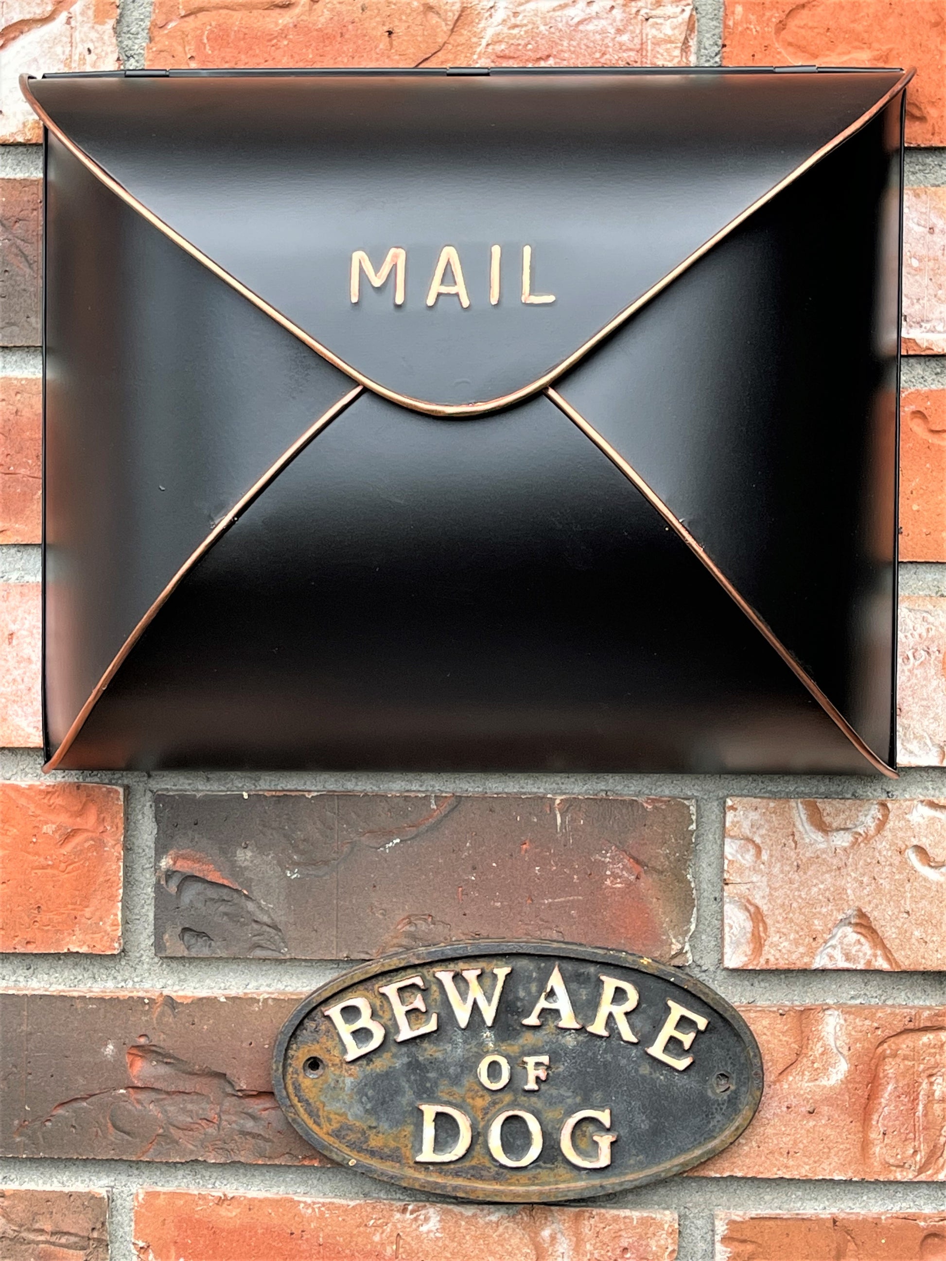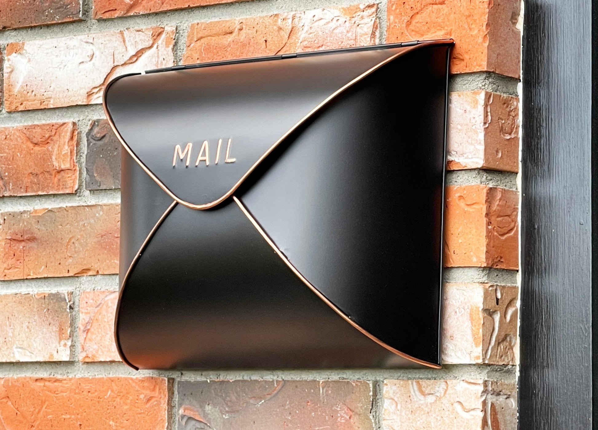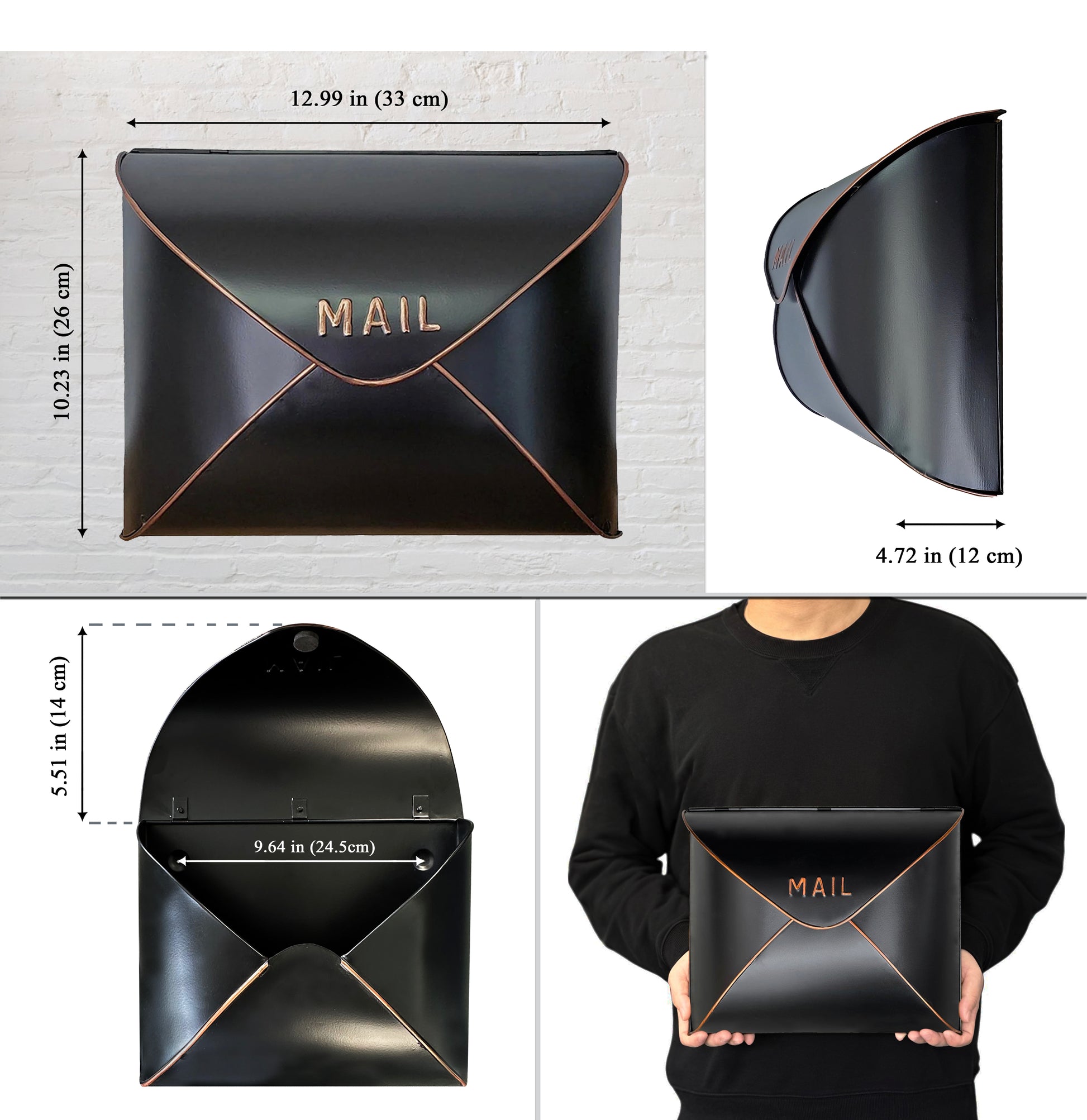 Black Envelope Mailbox W / Copper Rim, Large, India