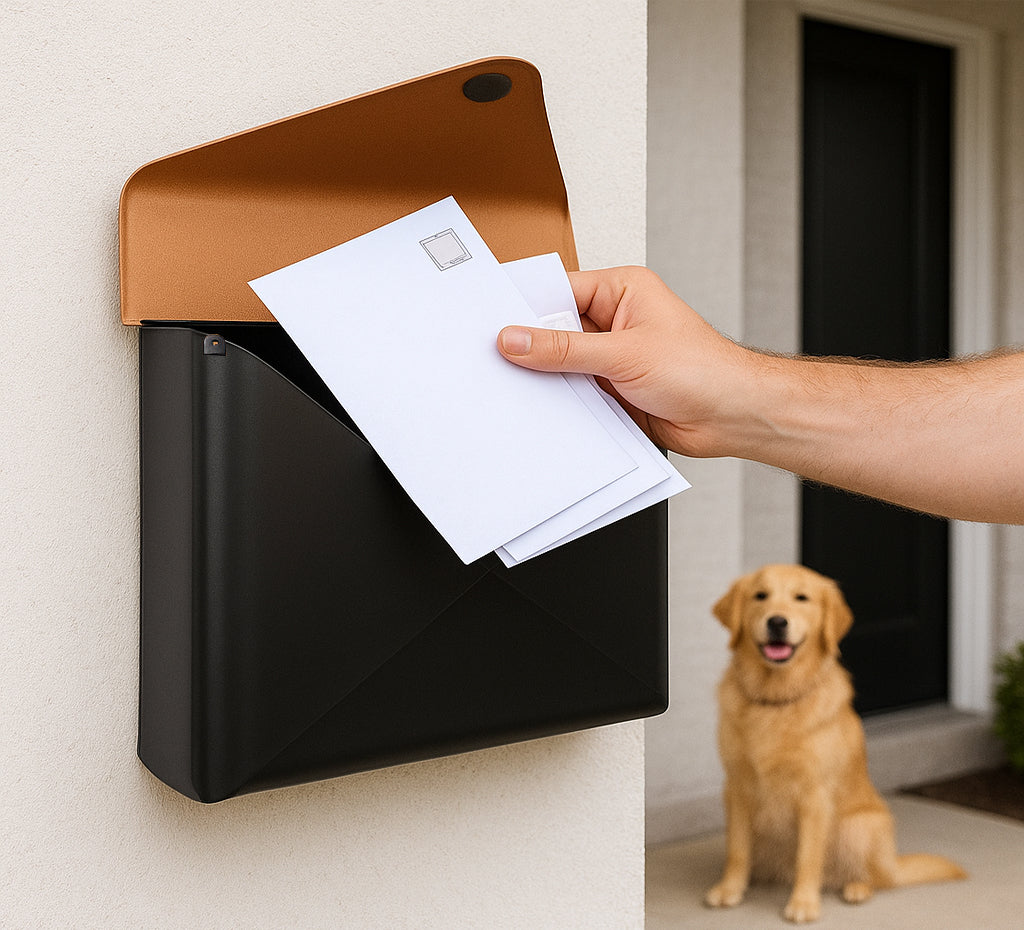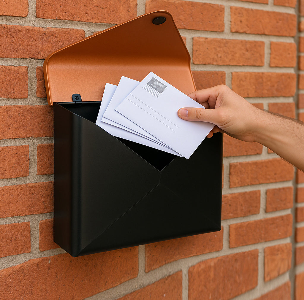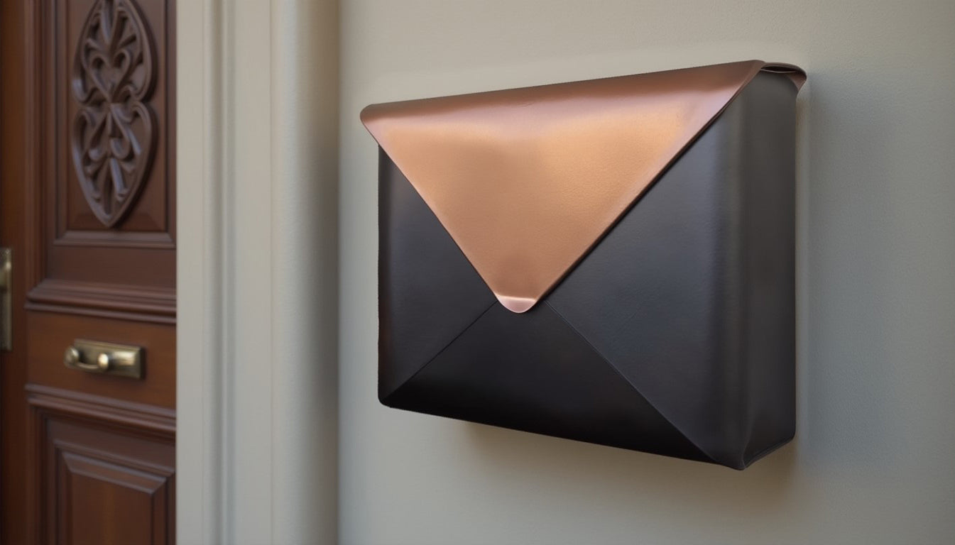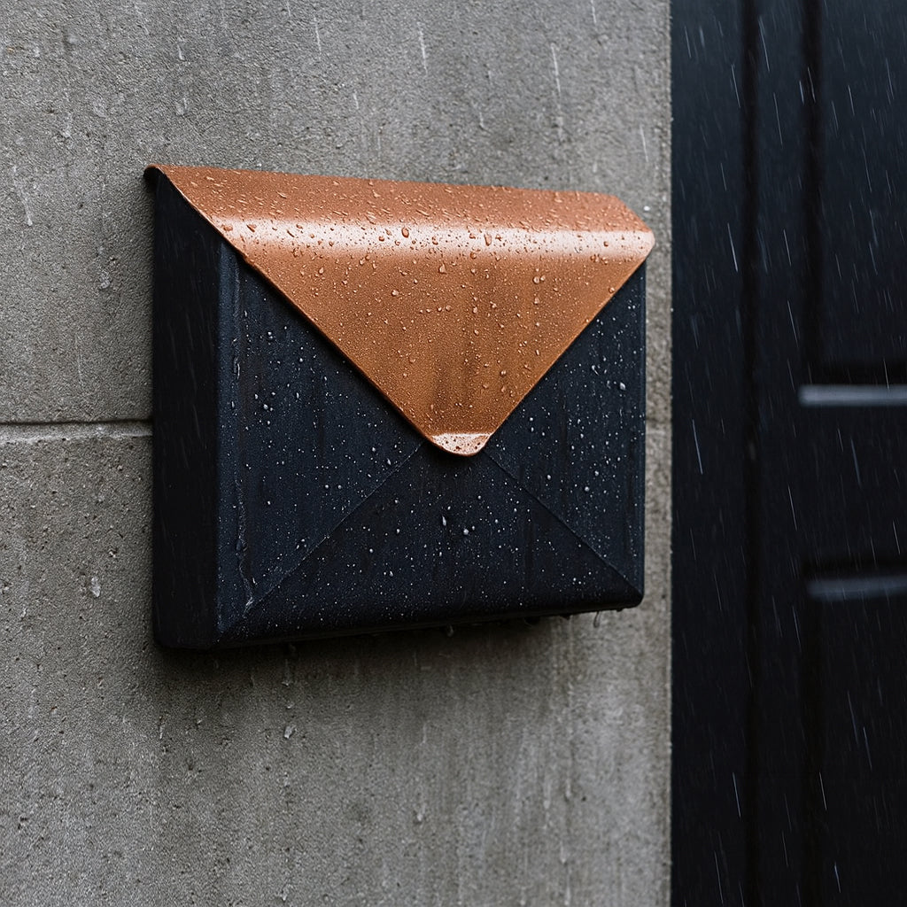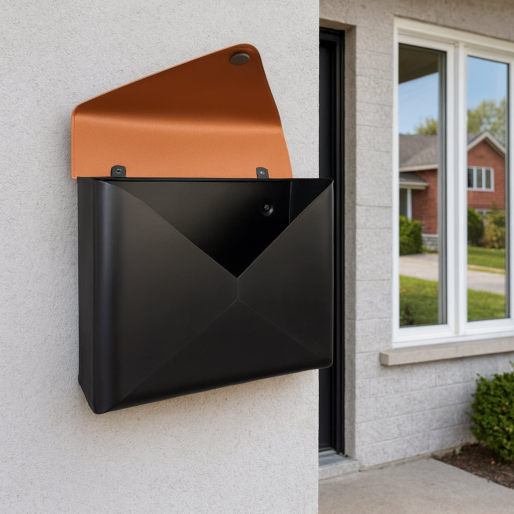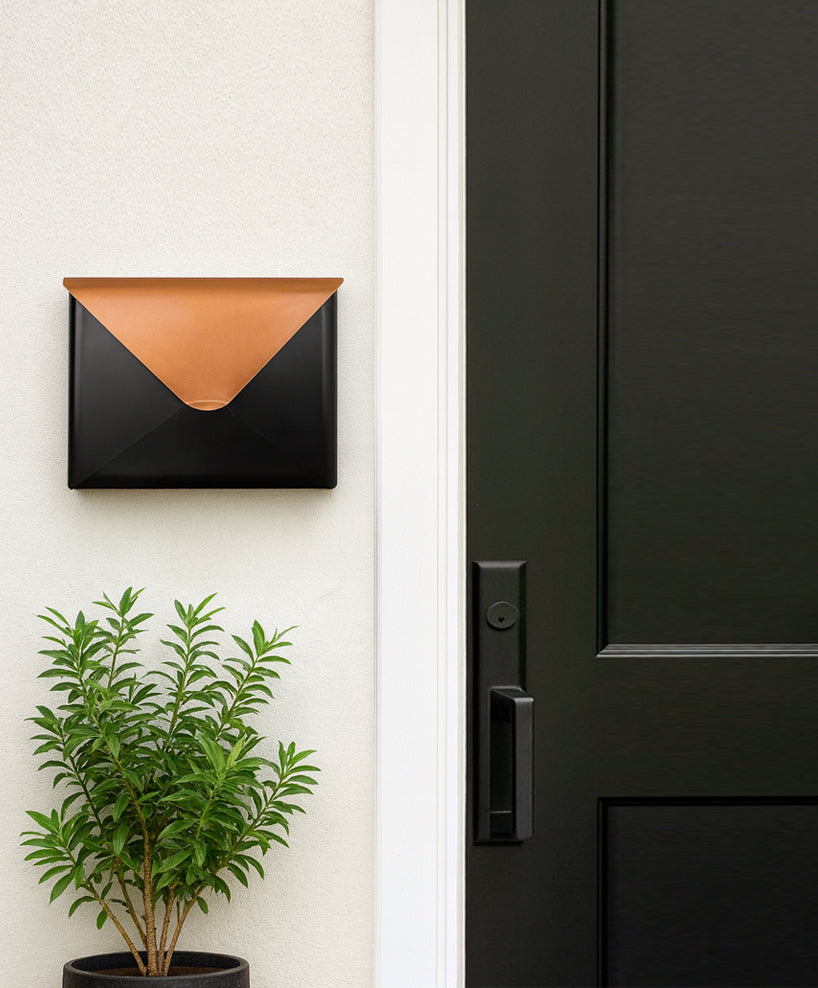 Sleek Envelope Mailbox, Black & Copper Lid, India