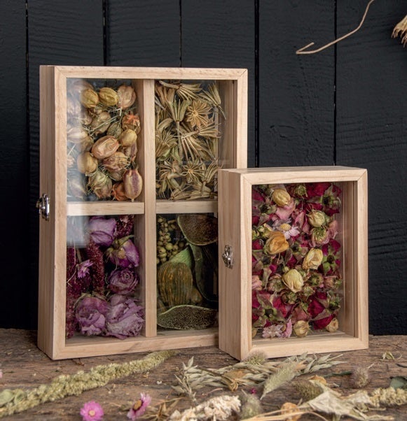 Give dried blossoms a centre stage! After drying blossoms, flowers and herbss can be shown in this floating frame. This floating frame has four compartment which can be filled individually.- deep frame to expose blossoms or other items- protects the dried blossoms- 4 compartments