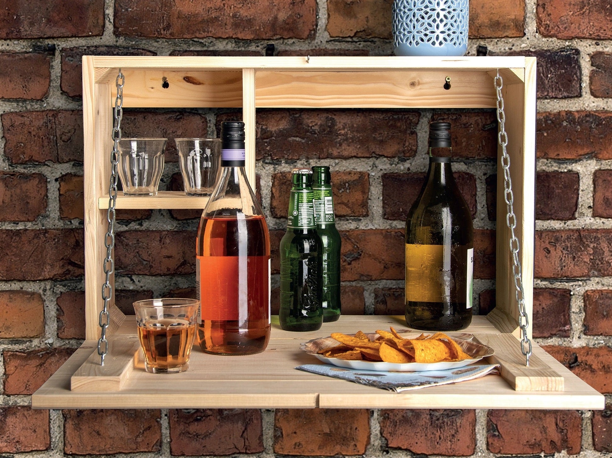 This wall bar can be used in several ways. As a bar to put drinks on, as a potting table or for decoration. The wall bar is provided with different compartments.- foldable- can be used in several ways- provided with different compartments