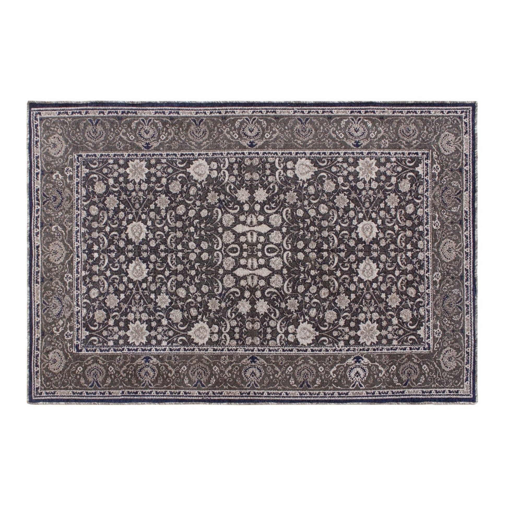 Washable Woven Carpet, 6.5x10 feet, Charcoal & Silver, TPR Backing, India