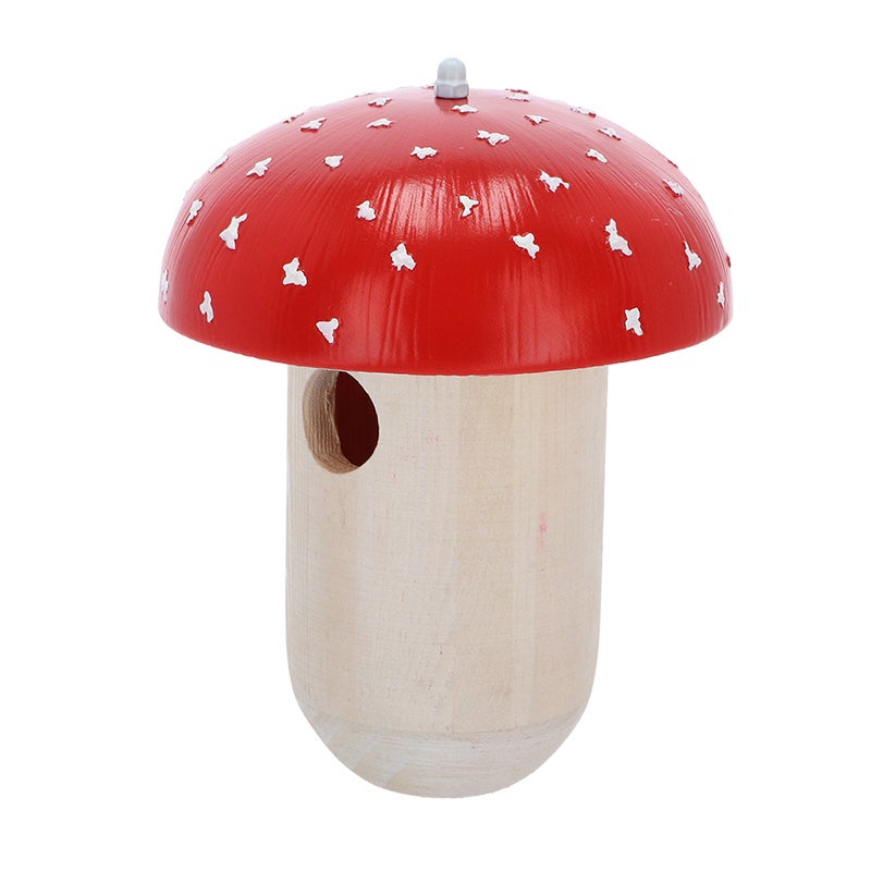 Bird House Fly Agaric, Pinewood, PP, iron, China