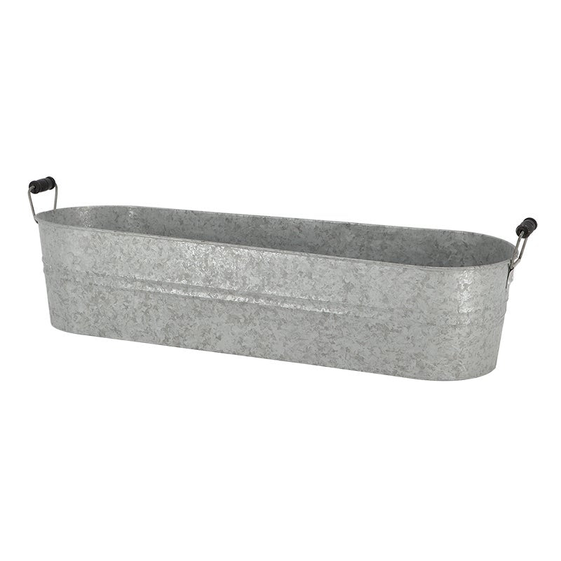 Using zinc in the garden is an ancient tradition and is used in many different ways and items. This oblong planter in old zinc design not only adds a lot of atmosphere, but also allows multiple plants to be planted side by side. Thanks to the wooden handles this planter can be moved with ease. - suitable for both inside and outside