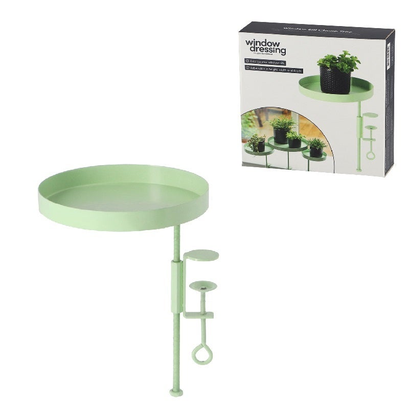 Liven up your window sill with this green clamp tray. The window sill or table will be enlarged and the tray can be provided with plants or other items. Decorative and functional! The tray is adjustable in height and can be turned in different positions.- flatpack- packed in a gift box- enlarges the windowsill- the windowsill clamps are adjustable in height- easy to use