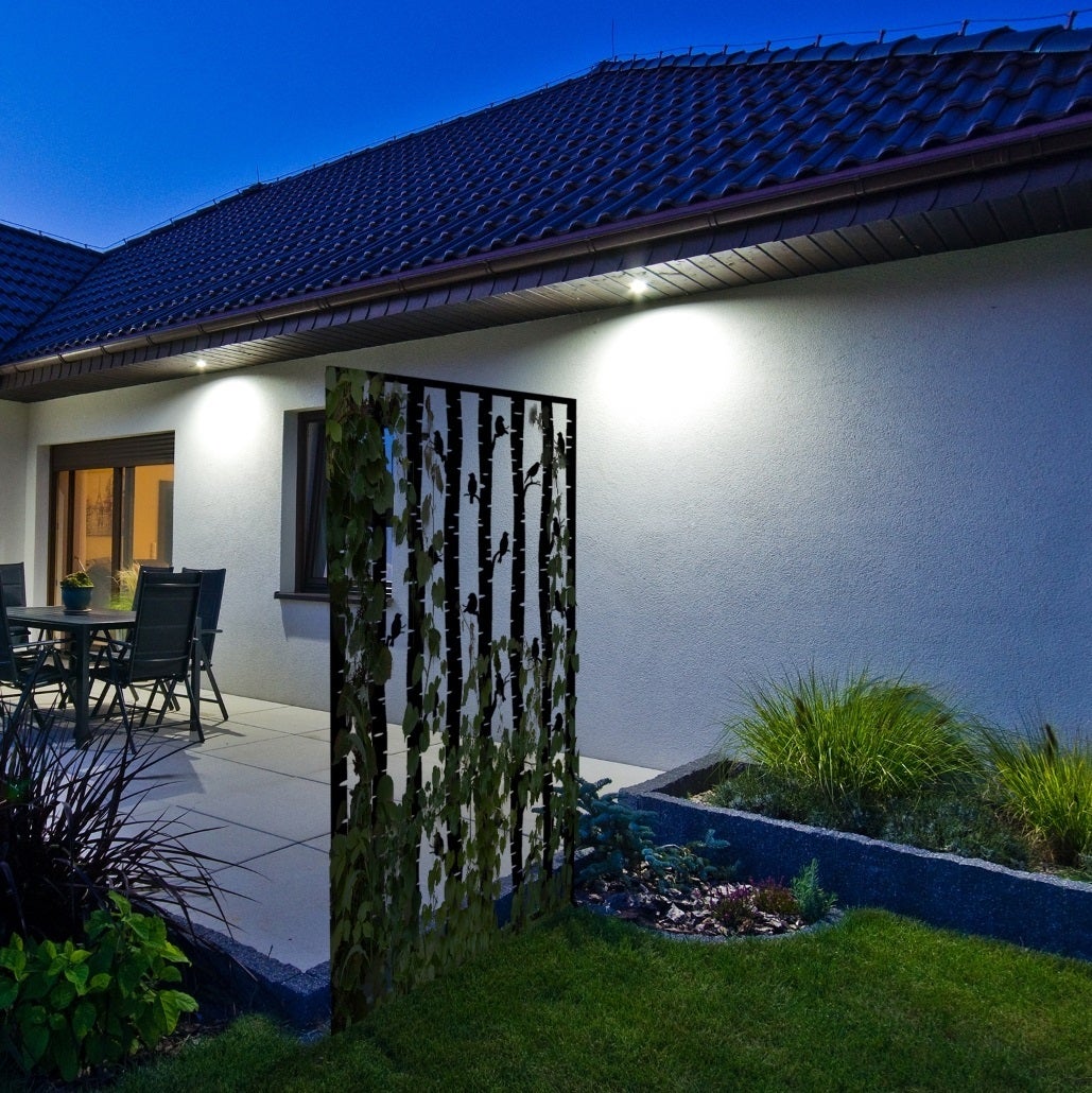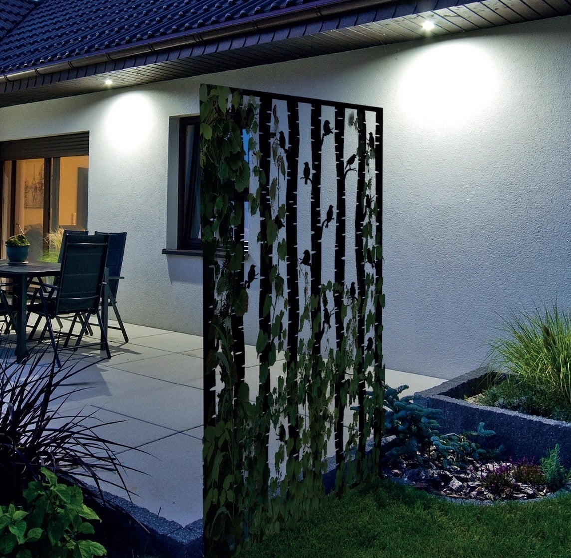 Block prying eyes with this decorative privacy screen with bird design. This screen can also be used as a plant support and is easy to stick in the ground.- flatpack- stops prying eyes- can also be used as plant support- can easily be sticked into the ground