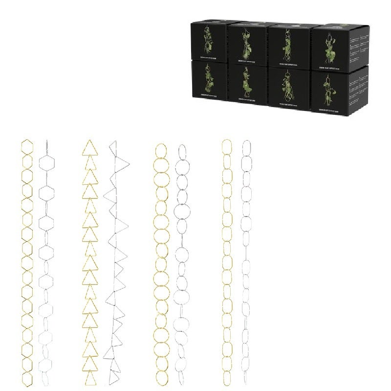 Give climbing and trailing plants a helping hand with this original plant support chain. The chain is easy to install and a real eyecatcher.- assortment of 4 gold and 4 silver (8)- ideal for climbing and trailing plants- easy to install