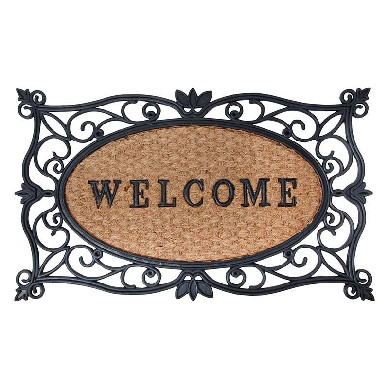 This rectangular door mat is beautiful, both for indoor and outdoor use. This doormat has a classic Victorian design with gracious curls and the coir mat has "welcome" stencilled on to it. Thanks to the robust and durable design and the rubber with woven coir fibres stubborn and coarse dirt is removed from footwear. The advantage of a rubber doormat is that it is doesn’t slide from its place.
