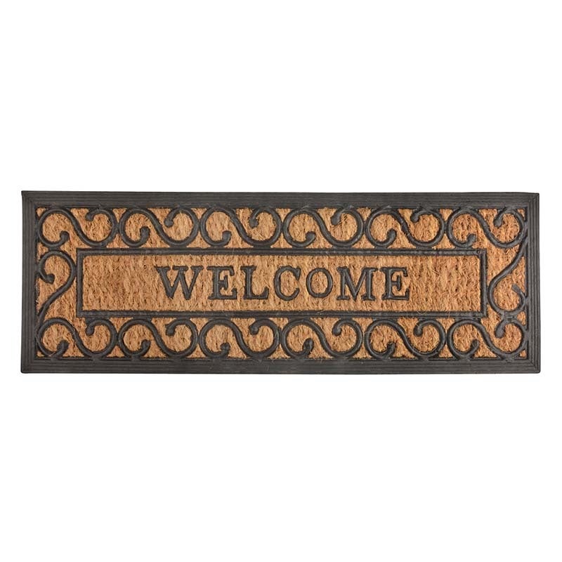This elongated door mat is beautiful, both for indoor and outdoor use. This doormat has a classic Victorian design with gracious curls. The coir part has a stencilled text welcoming the guest when entering. Thanks to the robust and durable design and the rubber with woven coir fibres, stubborn and coarse dirt is removed from the footwear. The rubber material ensure the mat wont move.
