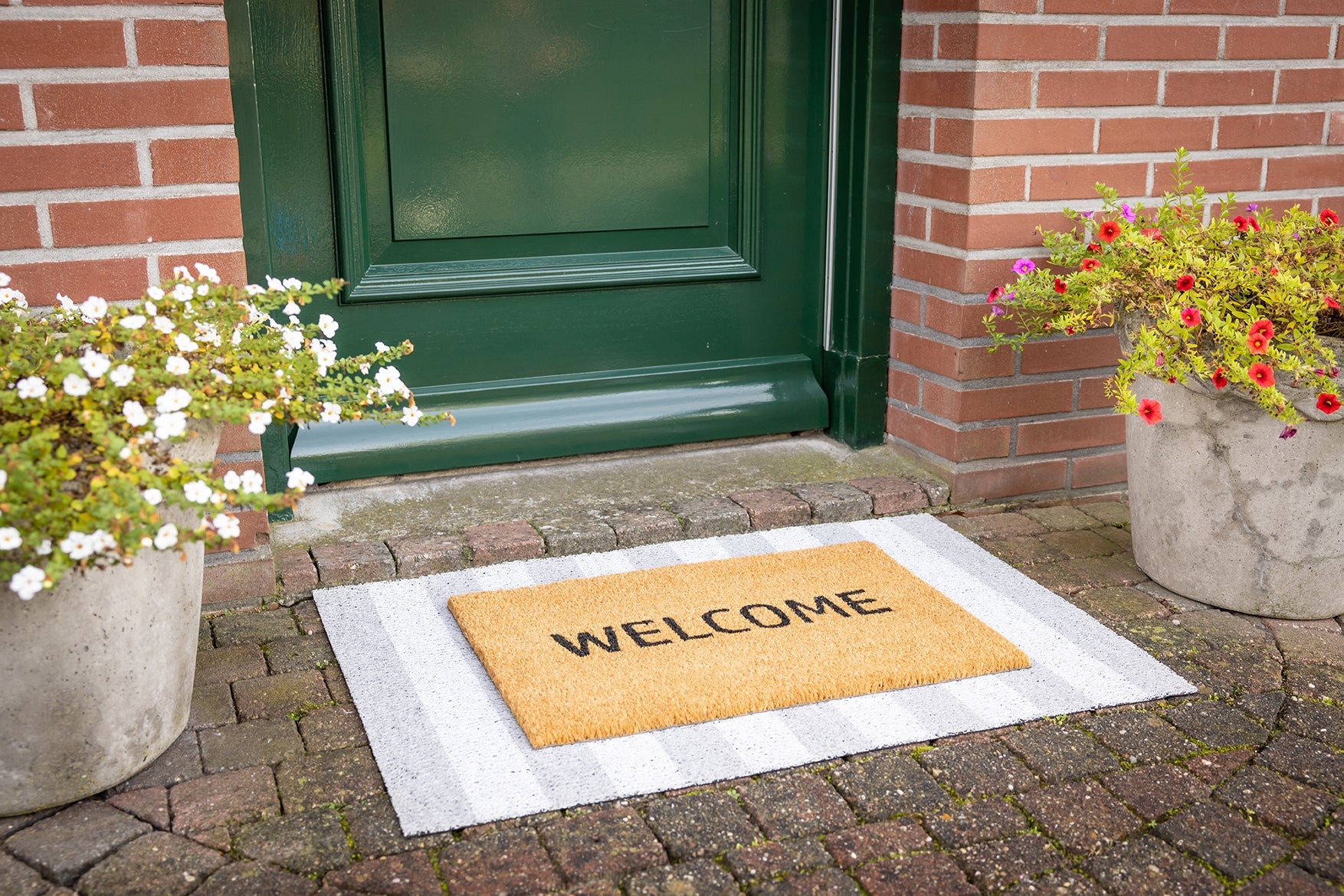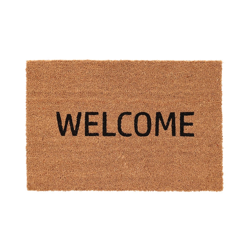 This coir doormat will make everyone feel welcome! This doormat is both decorative and functional. The mat’s strong coir fibres are good for cleaning the soles of shoes and boots. The doormat’s PVC backing helps to keep it in place.- made of coconut fibres- anti-slip- PVC backing- can be used indoors and out
