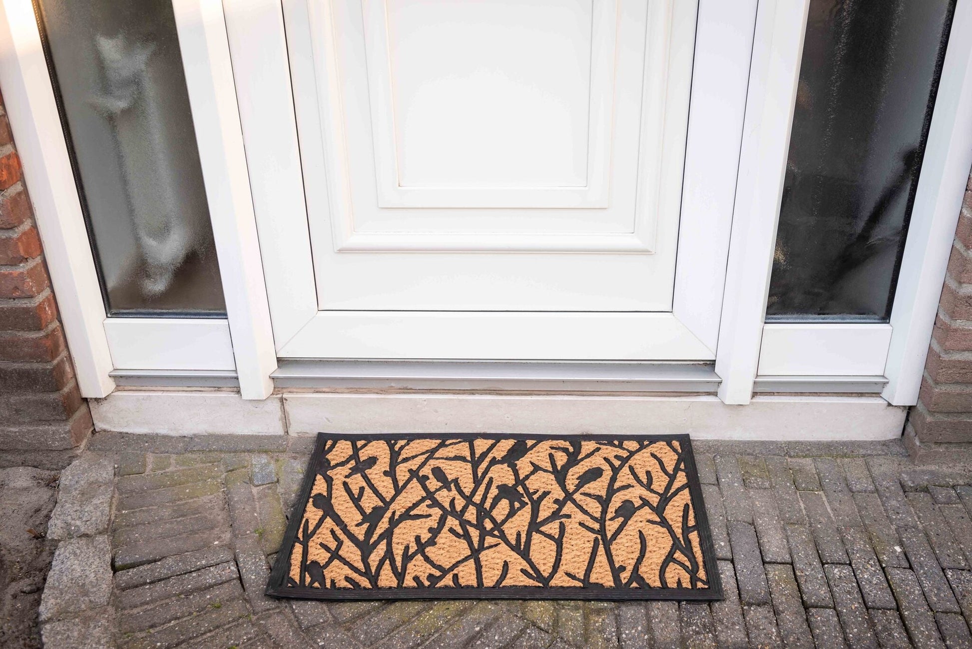 This rectangular doormat with beautiful chiffchaff print is suitable for both indoor and outdoor use. The robust, durable design in combination with rubber and woven coco fibres removes stubborn and coarse dirt from footwear. This rubber doormat stays in place.- easily removes dirt from under the shoes- stays in place