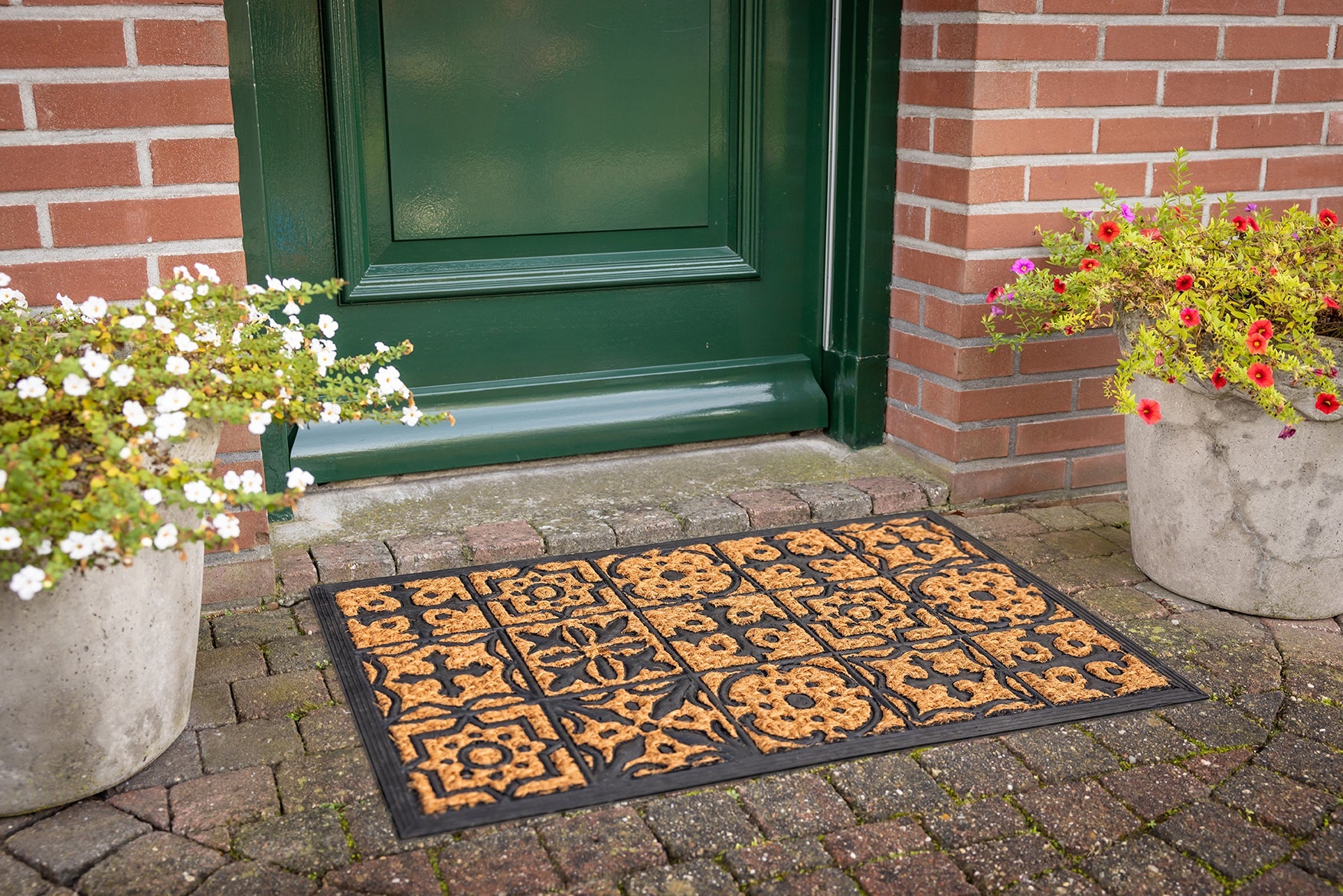 This rectangular doormat with beautiful mosaic print is suitable for both indoor and outdoor use. The robust, durable design in combination with rubber and woven coco fibres removes stubborn and coarse dirt from footwear. This rubber doormat stays in place.- easily removes dirt from under shoes- stays in place