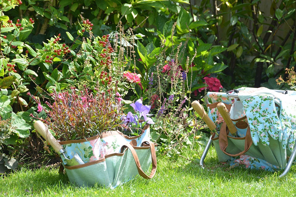 Roses represent beauty, romance and love. The old English rose pattern print of this tool stool combined with green jute pockets. This foldable tool stool can be carried with ease and provides an ideal place to sit while gardening. The removable bag with spacious side compartments provides plenty of space for garden tools and accessories, so that they are always at the ready while gardening.- 2-in-1 function- removable bag with buttons