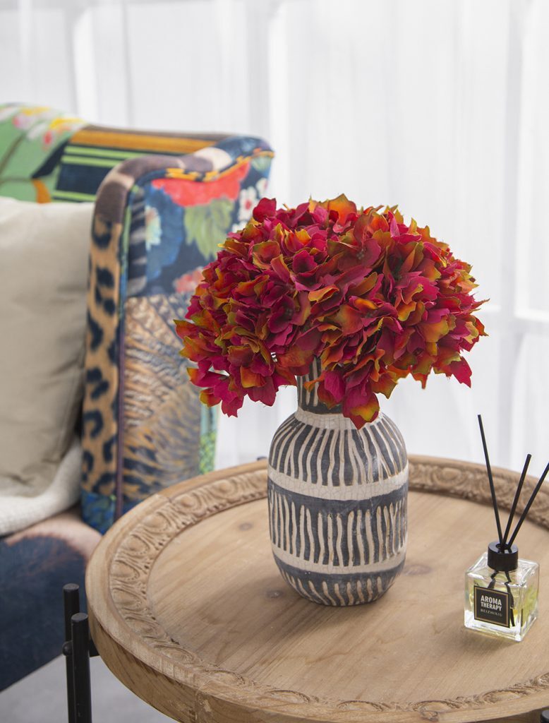 Artificial Hydrangea, Fucia, 40% Plastic, 30% Fabric, 30% Metal, China