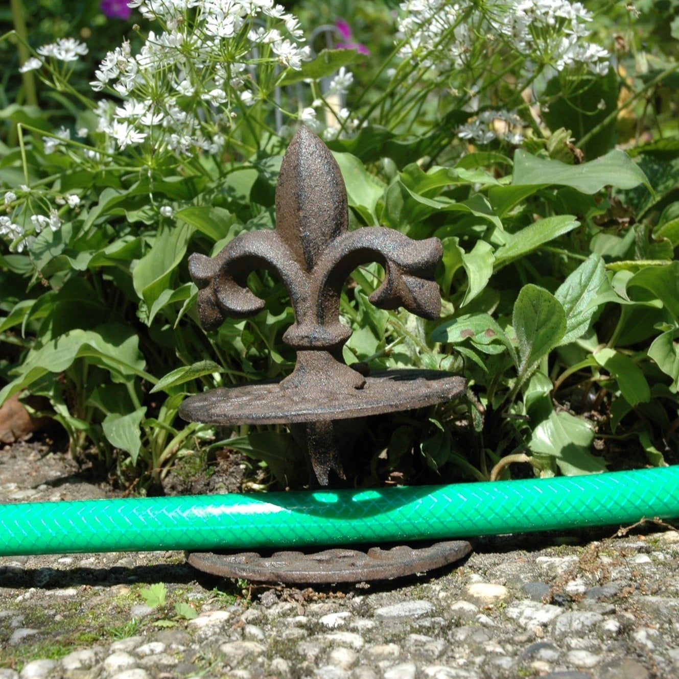 When watering plants with a hose it is sometimes difficult to prevent damage to plants and bushes, these hose guides can be firmly stuck in the ground wherever you want in order to protect the plants. This decorative cast iron hose guide has been hand cast according to age-old tradition and craftsmanship- assortment of 3 designs
