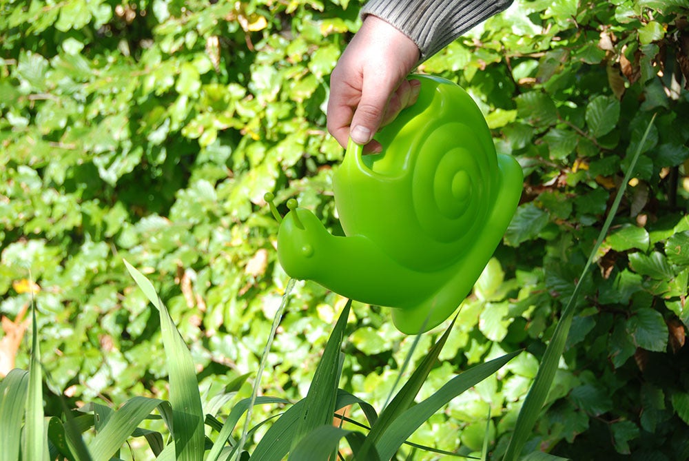 Snails can be found in any garden. This plastic watering can in the shape of a snail, with the snail shell functioning as the reservoir makes watering plants through the opening in its mouth is simple.