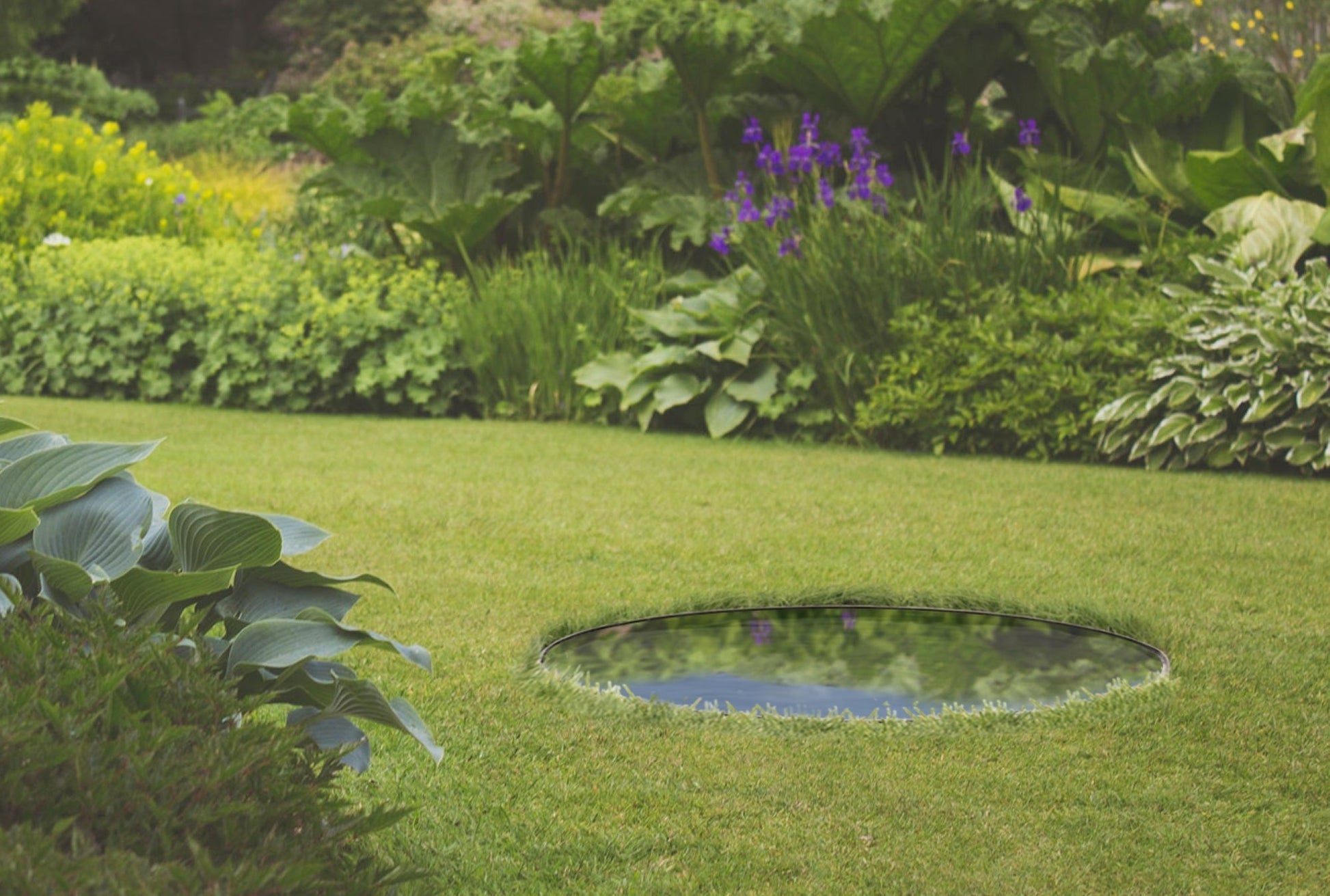 This water mirror has been developed to create this effect the garden. The water mirror works just like a mirror; the reflection of surrounding plants, flowers, buildings and the sky can be seen in the water. The world upside down!