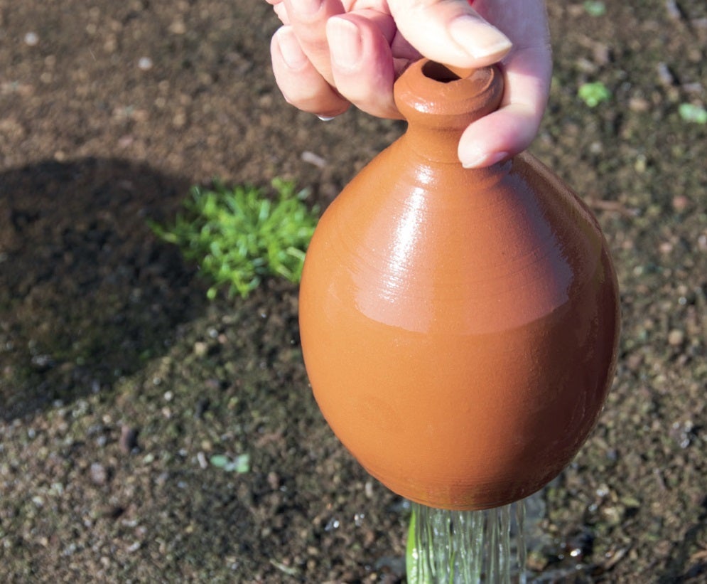 This thumb watering can is ideal for gentle watering of delicate seedlings and small plants.First put the thumb watering can fully under water and let it fill. Place your thumb on the hole at the top. Take it out of the water and hold it above the seedling or plant you want to water. Remove your thumb from the hole, and water the plant. Place your thumb back over the hole to stop the fine shower.- made from terra cotta- ideal for seedlings- easy to use- handmade