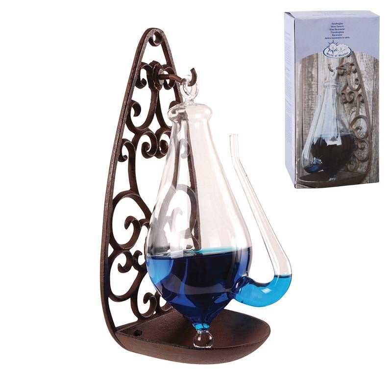 The thunder glass has been used since the early 17th century and is very simple. During bands of high pressure on sunny days, the water level is pushed down into the spout, While during bands of low pressure on cloudy and rainy days, the water rises within the spout. In an approaching storm it rises so much that it will begin to drip.- packaged in full colour gift box