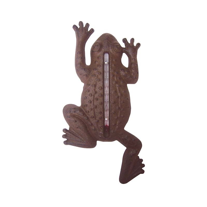 Cast iron thermometer in the shape of a frog. Indicates temperatures between -20°C and +50°C.