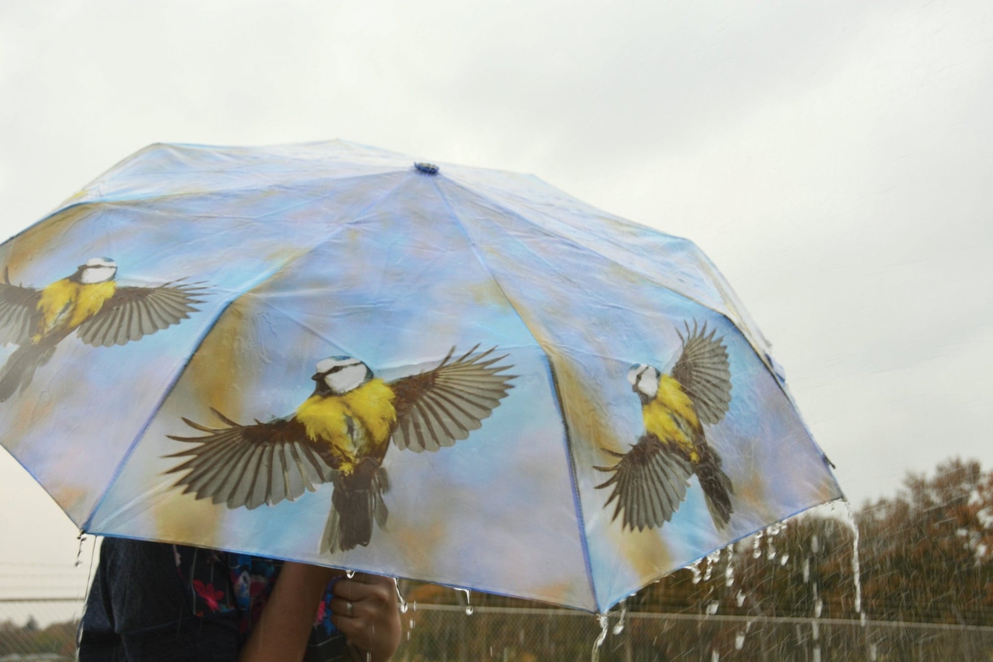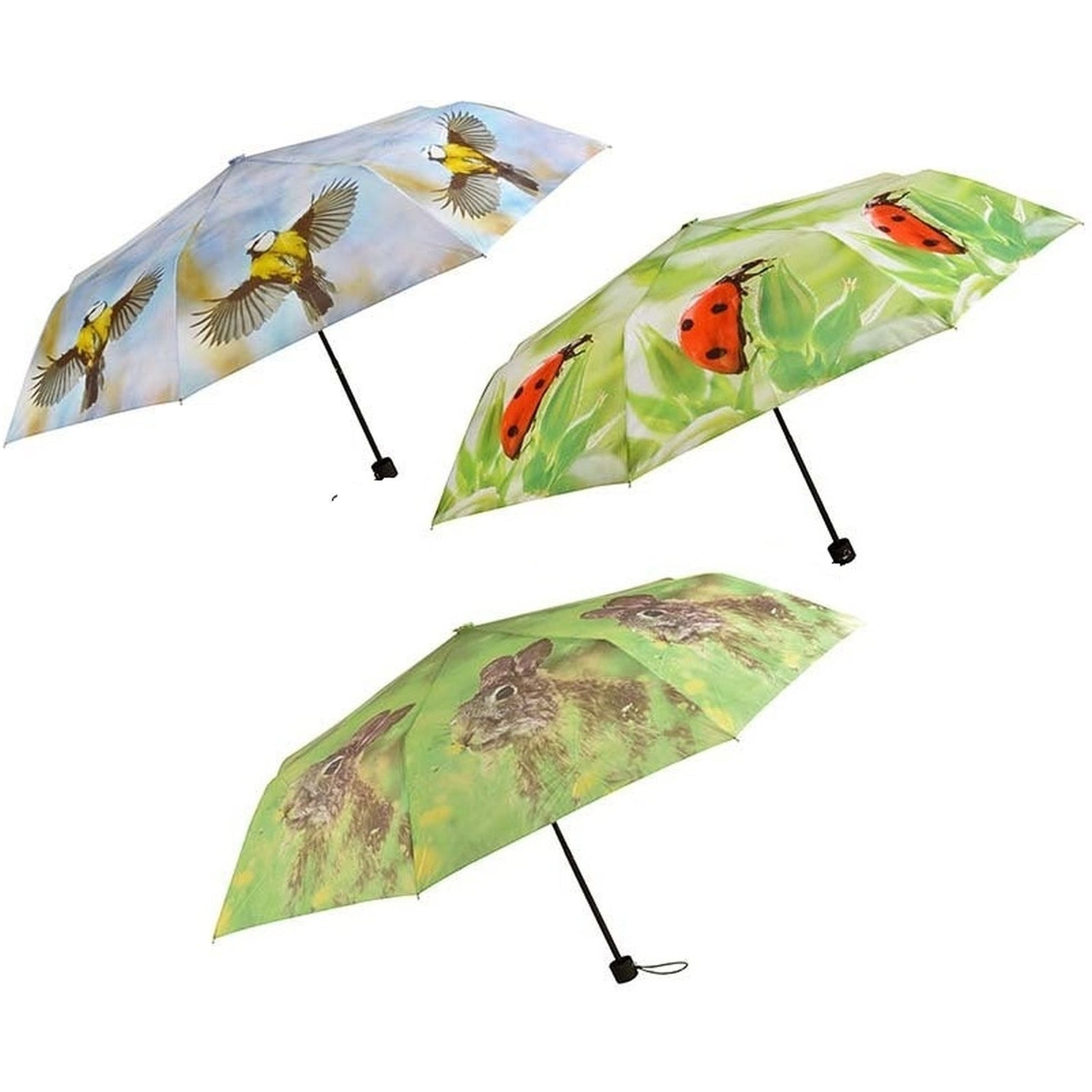 Who hasnt had this problem? Its starting to rain, but you dont have an umbrella with you. These foldable umbrellas can fit in any purse thanks to its small and compact size.- assortment of three designs (blue tit, ladybug and rabbit)- including cord to hang umbrella by handle- foldable