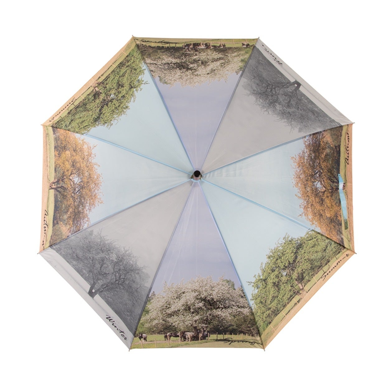 With this umbrella with photo print of every season even a walk in the rain becomes fun. The umbrella is provided with prints of every season.- wooden handle- opens automatically- with 4 season print