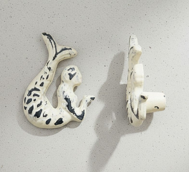 Mermaid Knob Metal Distressed Cream, Last Chance, India