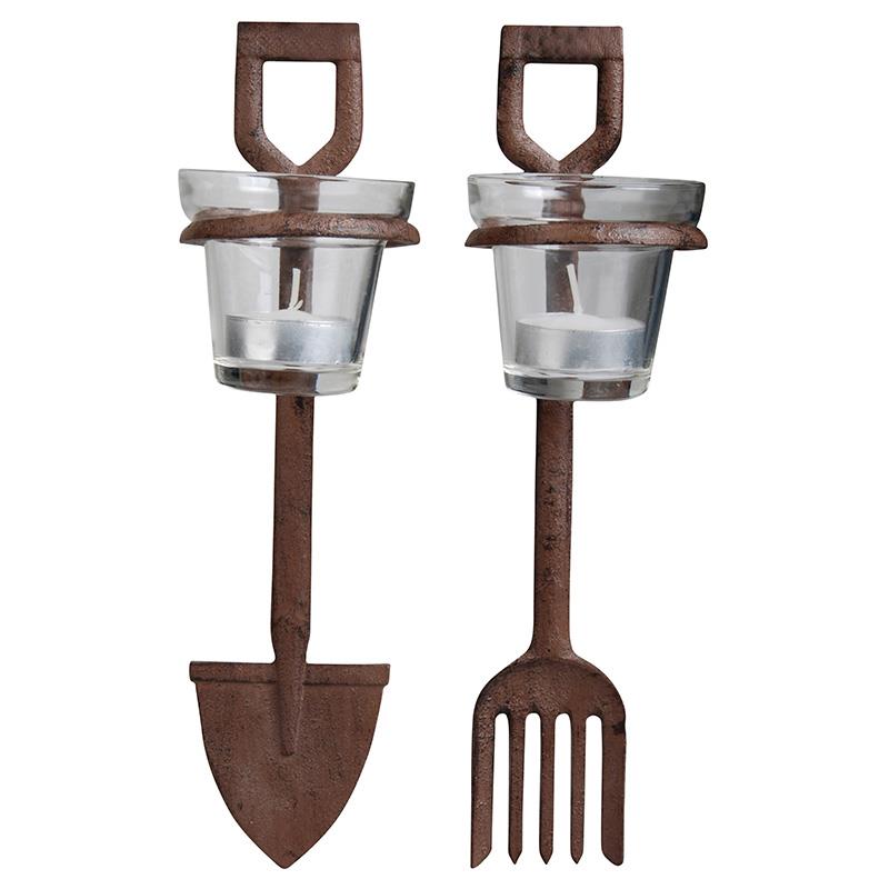 Candle holder fork/spade ass. Cast iron