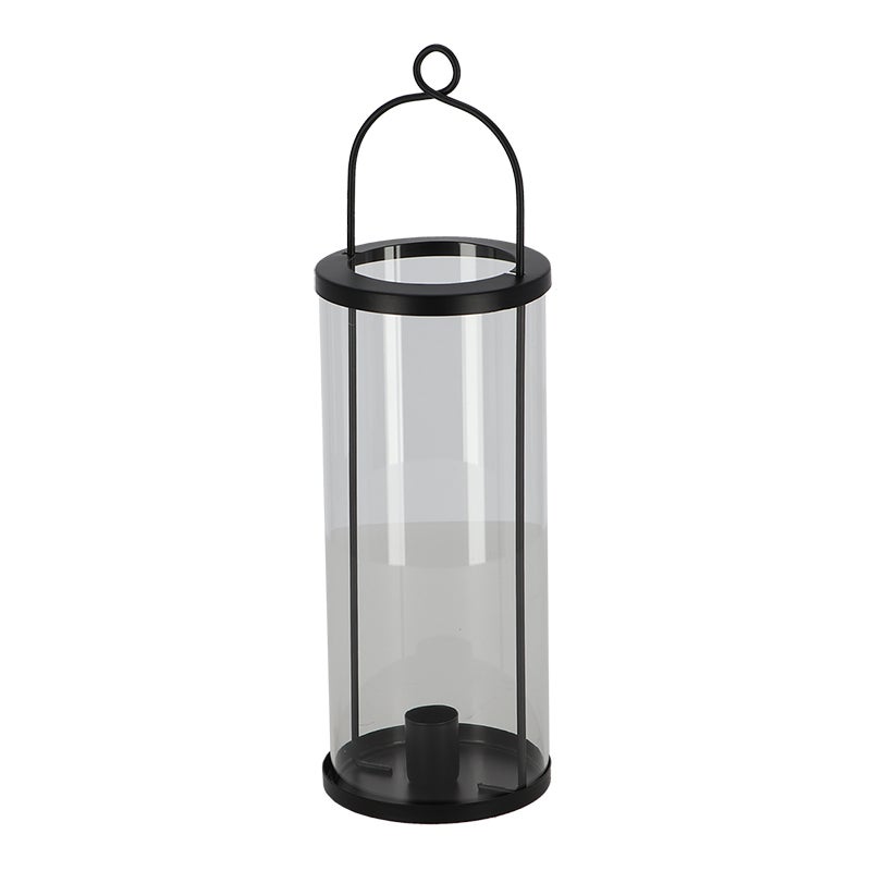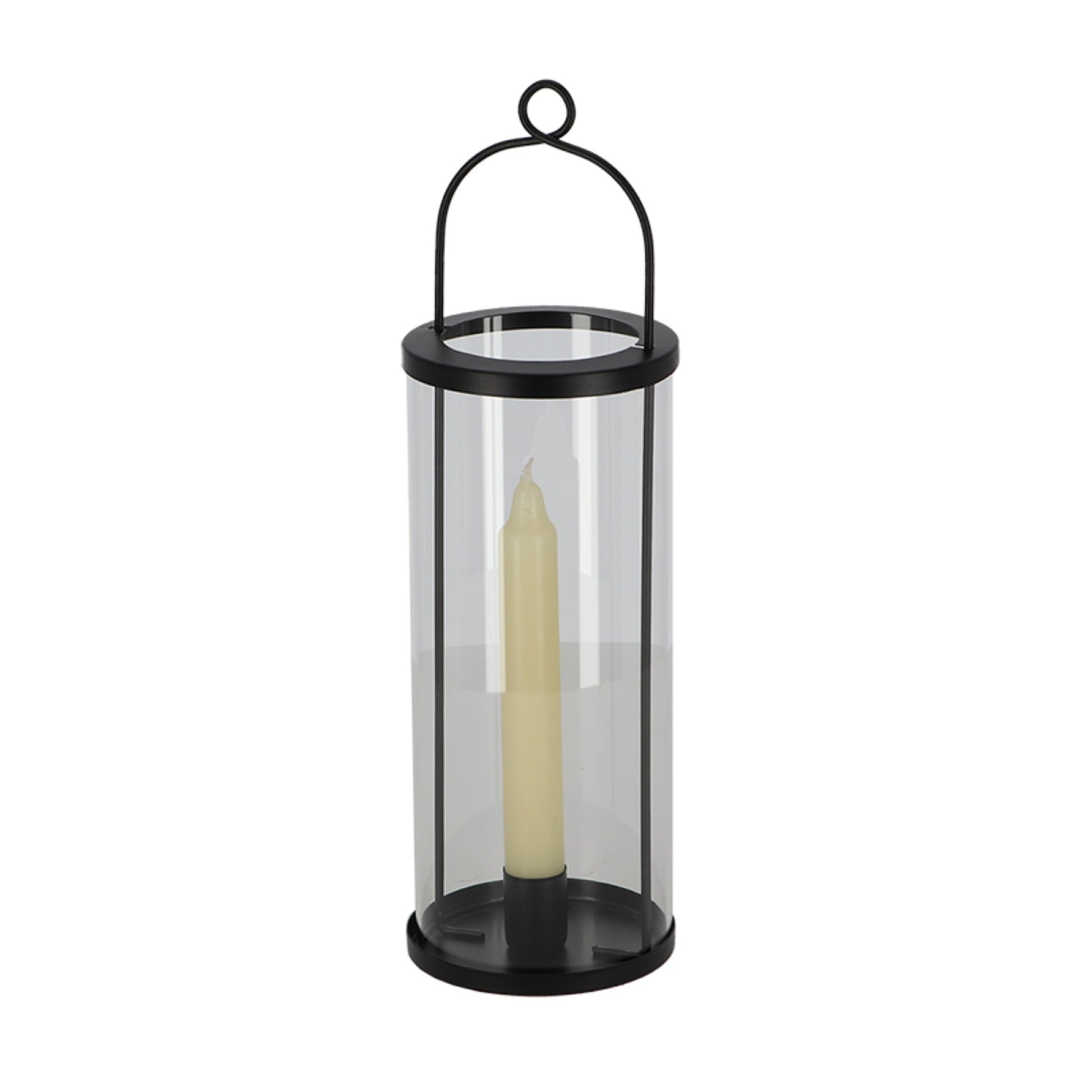 This transparent wind light with candle holder has beautiful black details and a sleek loo. The handy ring at the top makes it easy to hang the wind light, but even on a stool, table or on the ground, this wind light creates atmosphere in the garden. The glass and top can be slid upwards, making it easy to place a candle or tea light inside and light it. - creates atmosphere- candle is easy to place and light- handy ring to hang the wind light