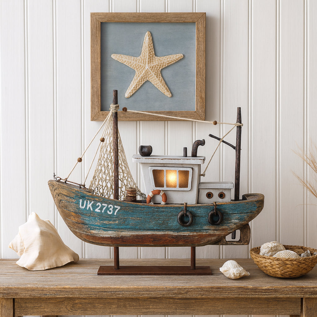 Reclaimed Wooden Vintage Sailboat, Distressed