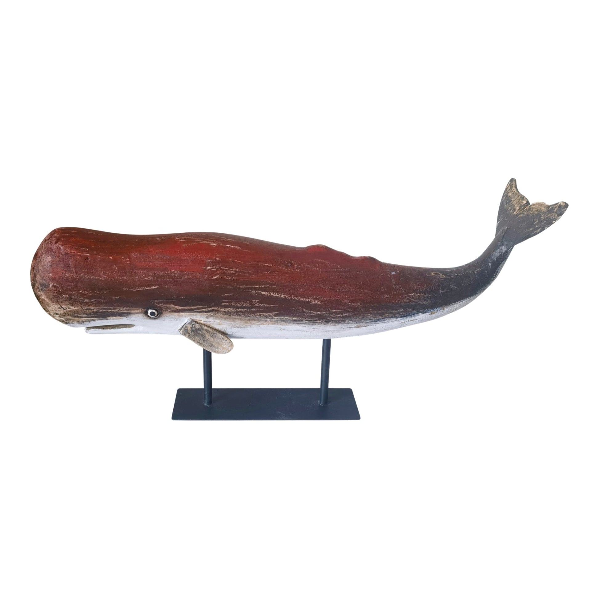 Reclaimed Wooden Whale, Dark Red